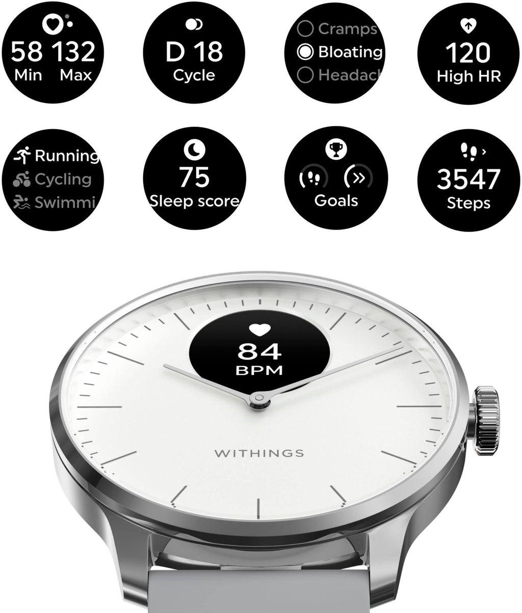 Withings - ScanWatch Light - Smartwatch híbrido de saúde diária - 37mm - Branco/Prata-HWA11-MODEL 3-ALL-INT